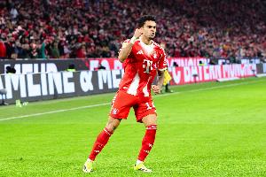 德甲第26轮,拜仁1-1战平勒沃库森。本次比赛,当值主裁的判罚多次引起争议,包括两黄变一红将路易斯·迪亚斯罚下。